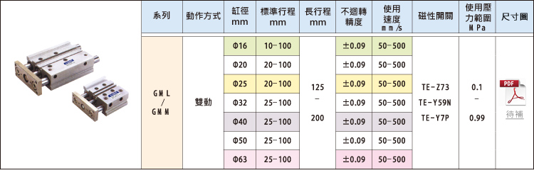 GML複合軸承型,GMM滾珠軸承型新薄型帶導杆氣缸