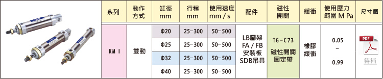 KJB系列標準氣缸 KMI標準型、尾平型標準氣缸